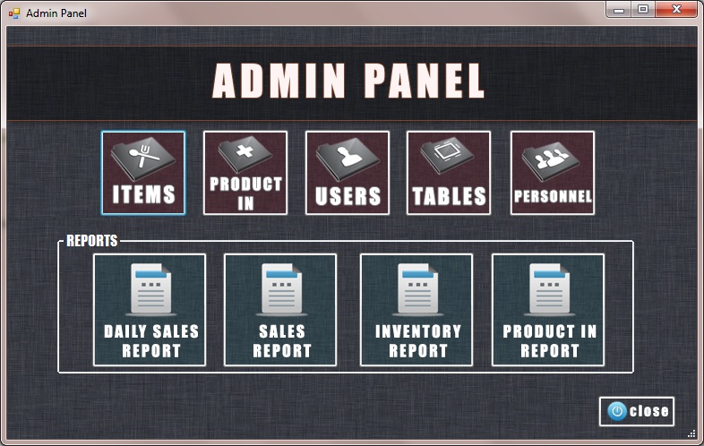 This screen allows to user edit, add, delete items, product in processes, users, tables, personnel of the restaurant and seeing reports of the restaurant if user role is admin.
