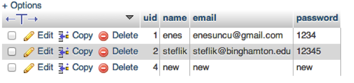 There are three tables for database.