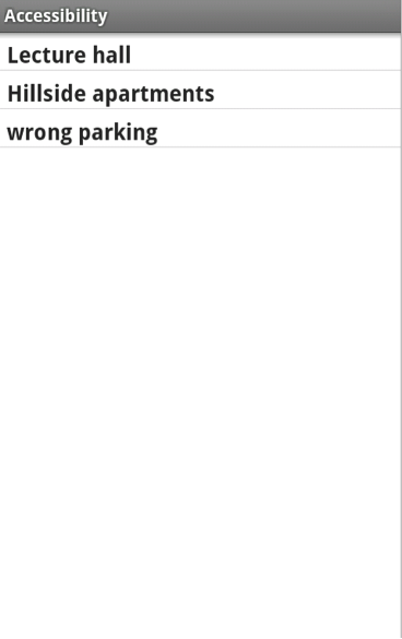 Accessibility Violations is a project that will help users to report current violations in an Android based application. The system shall be designed for the favor of community in terms of accessibility. It shall do this by allowing users to post the accessibility violations. With the help of this product, individuals will be informed about the accessibility violations around their neighborhood that might affect their daily lives.