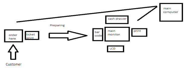 - The worker prints the ticket that includes the order of the customer.