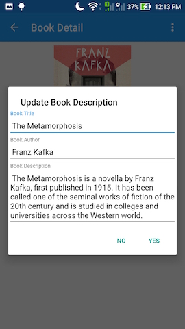 - Select Image from Gallery / or Take a New Picture for Book Cover Image