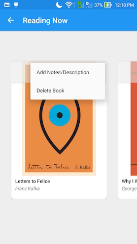 - Toolbar menu options was implemented for each Reading Now Book Item