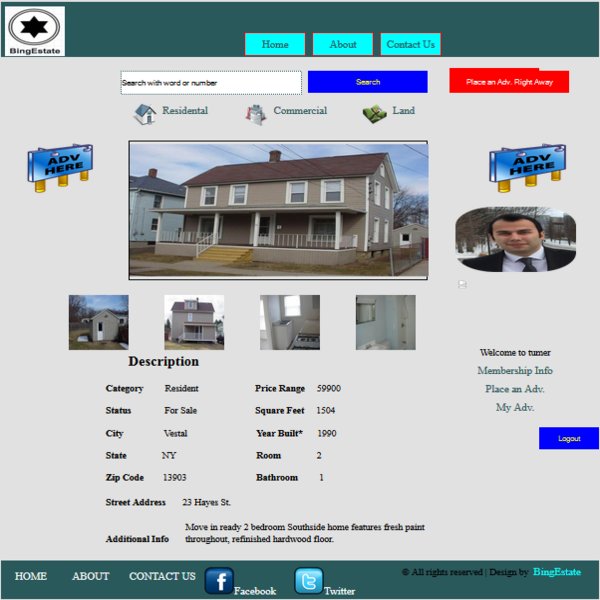 Following ads placed into BingEstate by its registered users, they were required to be viewed. For this reason, The Adview.aspx.cs page created to be able to display already placed ads and listings. By this means, anyone on the website can show details of any particular ad in a very clear way since no membership is required to view them. Ads info consists of a bunch of fields such as Category, Status, Price, Year Built etc. Unit testing on the source file in question made to make sure that it works just fine. The following is an example of how an ad can be displayed in a detaied way.