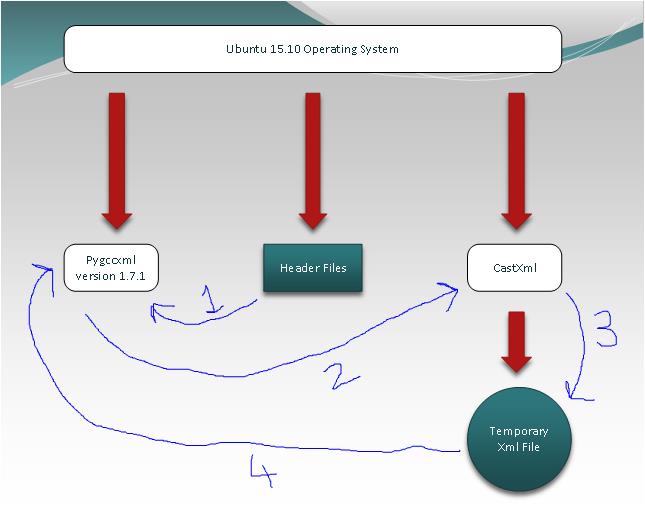 First castxml source code is fetched from github page and cmake is used to create platform native compile tree (such as linux make). Due to vague instructions on the page and lack of experience with cmake, I was not able to compile directly from source code from github page. For this reason, I emailed castxml mailing list to find out what I can do about it. Came another vague explanation from there. But it was help in a way that it stated there is a prebuilt version of castxml present for Ubuntu. However, since the package is recently built, maintainer said that it may not be accessible through Ubuntu's package managere "apt-get". I found the repository and downloaded the program and tried to install it using dpkg of Debian systems. It didn't work.
