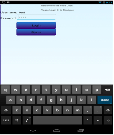 In the first page, there is sign up and login selections. If user visits FoodClick ™at the first time, she/he should sign up to give an order. On the other hand, if user has already had an account in FoodClick ™, she/he can login to give an order. There are username and password in the login part.