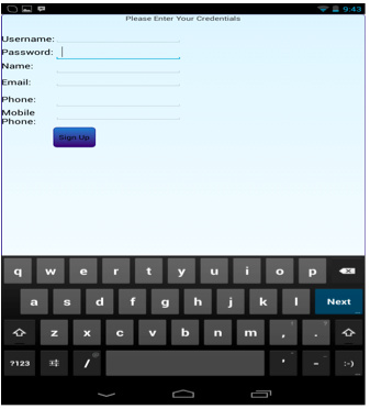 To sign up, user give information about username, password, name, email, phone and mobile phone. User clicks “Sign Up” button to get an account. These data are whole inserted into database.