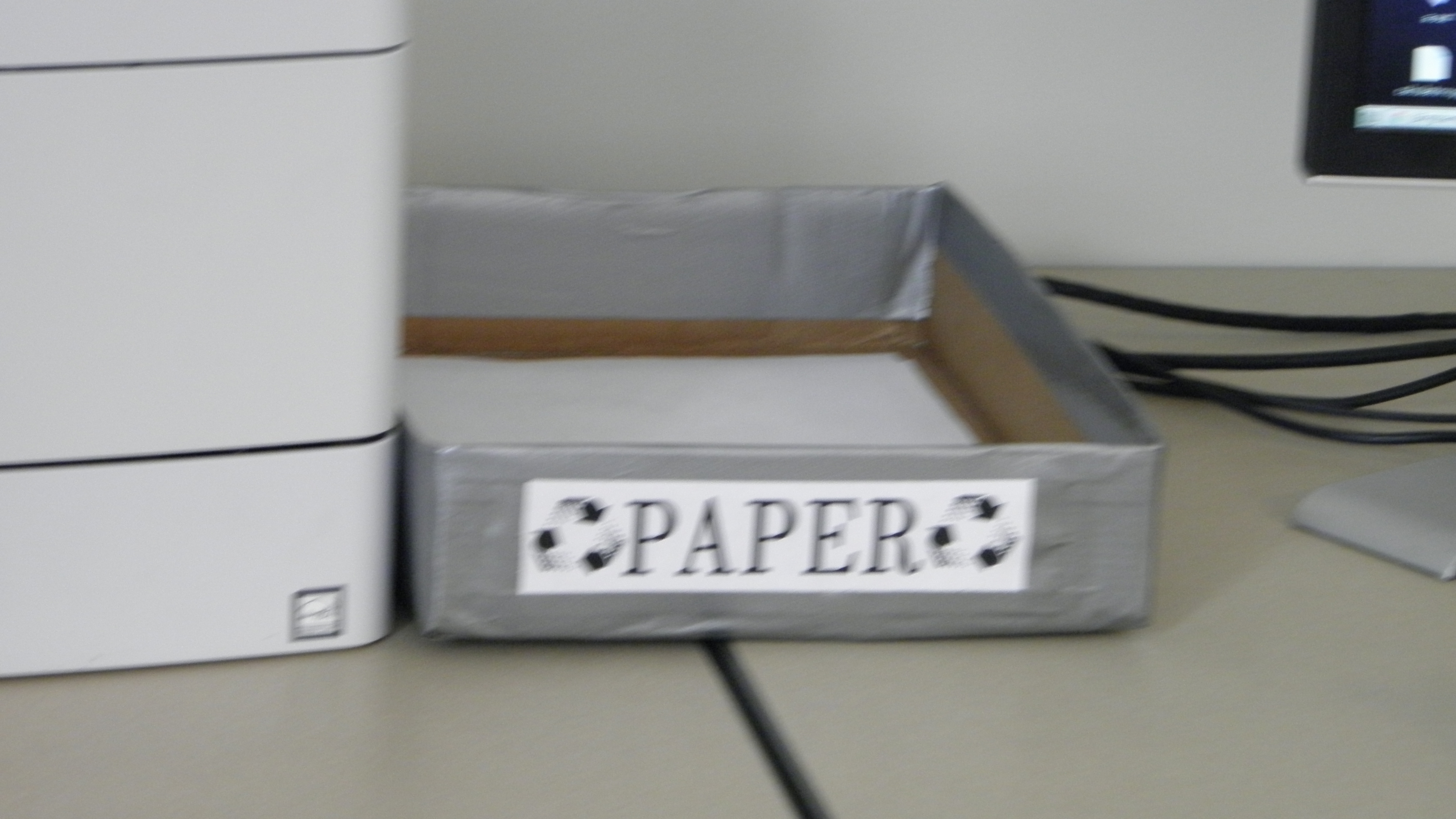 -Installing a paper recycling bin. -Installing a bottle recycling bin. -putting the old computers on surge protectors so that they can be cut off from the wall outlet to reduce "vampire" energy use.