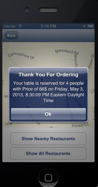 - Mobile applications provide user to place an order changing the database variables dynamically. When the order is placed by mobile application user whose location is determined, the variables belonging to order table in database are updated. The online order is shaped according to restaurant id, restaurant menu selection, number of people reserved for table, contact phone number and time for delivering the order to the customer.