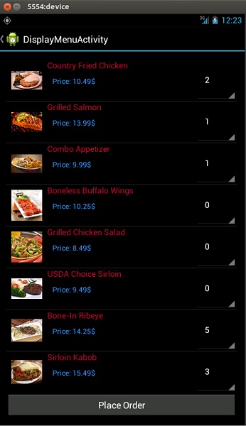 The purpose of this project is to present mobile users software product in order to give them chance to place order without going to restaurants, minimize the waiting time for the preparation of food, provide restaurant users chance to keep track how many customers come and at which time intervals, provide restaurant users to save money while hiring required number of waitress depending on the number of person placed an order and give them chance to compute with fast food chains for the fight against obesity.