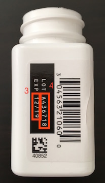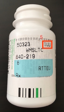 - Price: The price pharmacist paid for that particular bottle. It is shown with 3 letters which is on the sticker the pharmacy puts on the bottle. The price tag has a fixed place on the sticker that all pharmacists use. It uses the word "PRECAUTION" as the keyword for "1234567890".