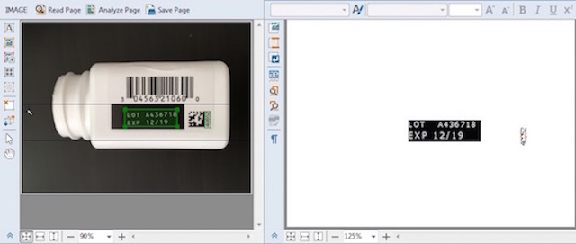 This picture shows that after changing the default OCR analyzing of the photo and labelling Lot number and exp date as text, OCR was able to get those values into text format.