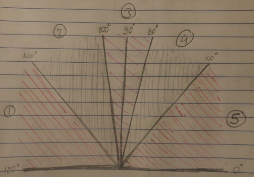 - After calculating the angle I will select which section it falls into as shown below. This design is made by the Capstone team last term in order to find a way to communicate