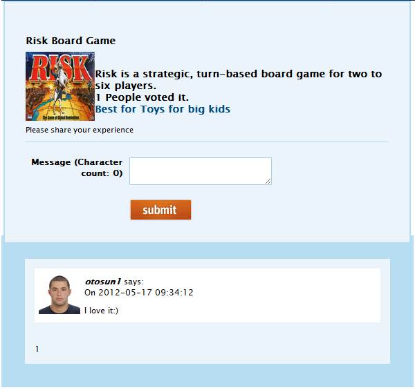 People can vote for toys which they bought or experienced before, because of that we have “Did you buy this product” button which enables voting.