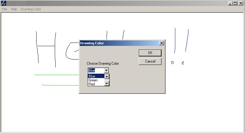 another modal dialog box entitled "Drawing Color" similar to the one shown below