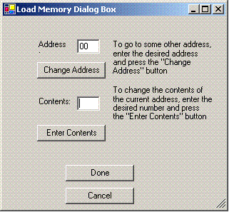 CS-220, Sections 50, 51 Laboratory Exercise # 1 2-2-06, Report Due Date: 2-9-06 In this lab you will be doing some work with a program that simulates the simple computer with a hardwired control unit that we are discussing in class. I will be sending the simulator program to the CS-220 listserv and you should save a copy of it on the hard disk of the computer you are using in the lab. (If you have your own PC, you may want to put the simulator program on that machine as well so you can work with it at home. If you do so, please be advised that you will need to have the Microsoft .NET Framework installed on your machine. If you have Visual Studio .NET installed, the Framework will already be there.) The lab instructor will also have a copy of the program executable on a floppy disk, Flash drive, or CD-ROM so that if you did not receive the email to the listserv you can upload it from the lab instructor's disk. Description of the Simulator The simulator simulates execution of programs on the computer described in the Week 2 class notes at http://www.cs.binghamton.edu/~reckert/220/hardwire3new.html. You should have a copy of those notes with you in lab. When you start the simulator, something like the following appears on the screen:Note that there are two windows: one on the left representing the data path section of the simple computer and the other one representing its hardwired control unit. The user may take any of the following actions by pressing the appropriate button in the upper right-hand corner of the data path window: Load or change a machine language program in the computer's RAM memory, Load a predefined example program into RAM, start the clock (in which case the fetch-decode-execute cycle will begin, causing whatever program is currently in RAM to be executed until a HLT (opcode 8) instruction is fetched and executed), stop the clock, single step through the program (causing the next clock pulse to be issued), or reset the registers of the computer to their initial values. Each time a new clock pulse is issued while the clock is running or when the single step button is pressed, all of the data path's active control signals are displayed; the busses and registers that are currently being used at that moment are highlighted in red and their contents displayed; the action that has occurred is indicated; the new contents of the registers and memory are displayed; and the appropriate active control lines inside the hardwired controller are highlighted in red. When the user presses the "Load or Change RAM" button, the following dialog box is displayed: