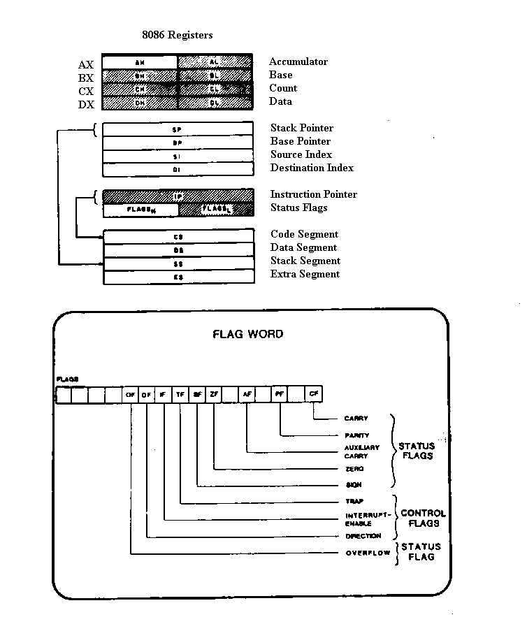 Type of memory access Segment Register Alternate Seg. Reg. Offset ----------------------------------------------------------------------- Instruction fetch CS none IP Stack access SS none SP or BP Data access DS CS, SS, ES DI, SI, or BX Symbolic data access DS CS, SS, ES generated by assembler