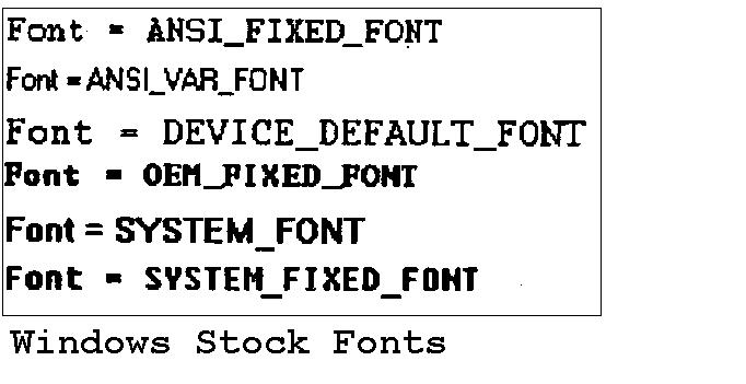 Logical or GDI fonts- Defined in separate font resource files on disk- .fon (stroke or raster) file .fot/.ttf (TrueType) file