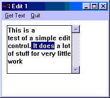 User can enter/delete text in the edit control & scrolling is built in