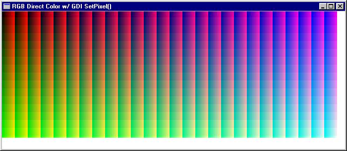64 continuously-varying shades of red, green, blue, and gray vertical lines.