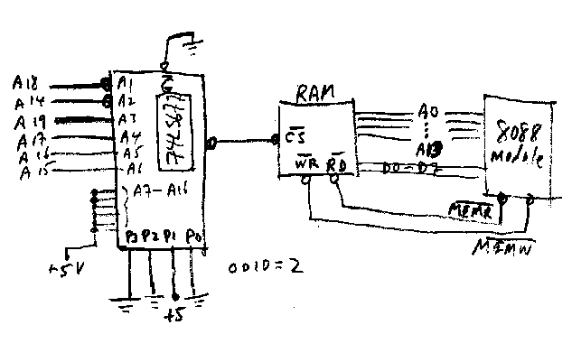 Map a 16K x 8 RAM chip to an 8088-based system, beginning at address