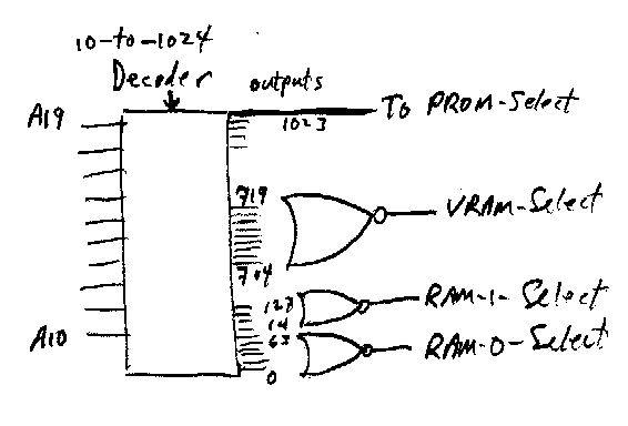 1K PROM at top of memory: 1*2^10 ==> 1111 1111 11