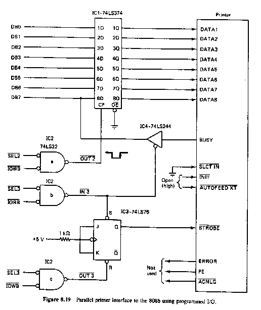 Centronics interface using polling (Figure 8.19)