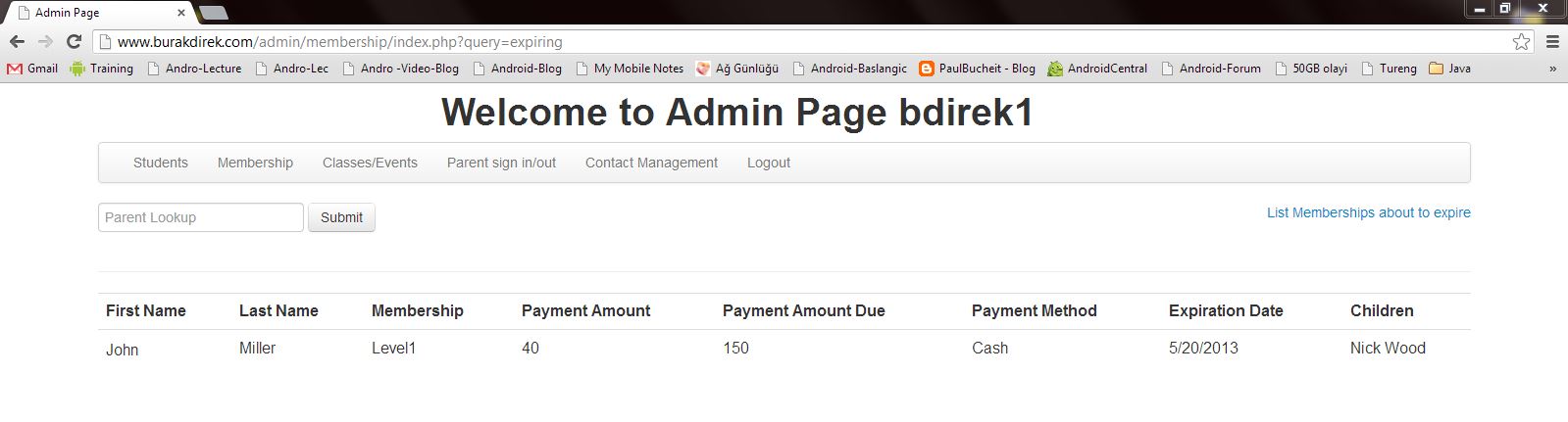 Membership Expiration panel shows the members whose membership will expire within 30 days so that they can offer new membership or send them e-mail to let them know their membership will expire soon.