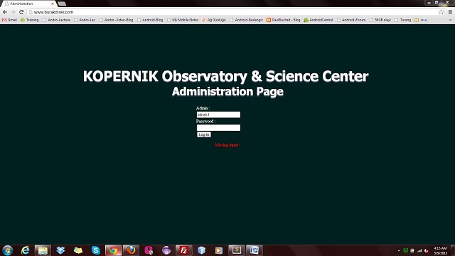 Kopernik Science & Observatory Center Administration Panel started to design after the completion of the database of the project.