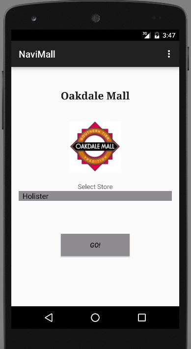 NaviMall is an android application project in order to find and show the shortest path to a desired store in a mall for users. This application is more useful in big malls like Destiny USA or Woodbury Outlets. Via the NaviMall application, users will be able to see the list of stores in a mall, and find out the route to get there quickly.