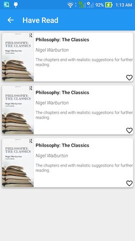• EventHandler created to work with favorite button in the CardView to send book data information from HaveReadPage to Favorites Page