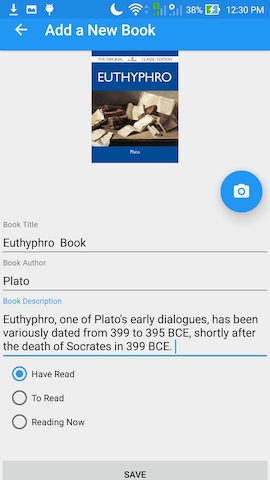 • Select Image from Gallery / or Take a New Picture for Book Cover Image