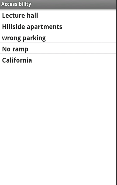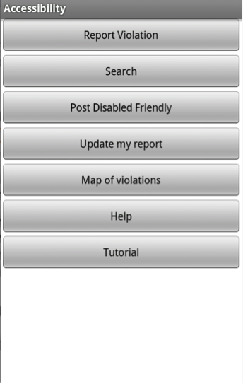 Accessibility Violations is a project that will help users to report current violations in an Android based application. The system shall be designed for the favor of community in terms of accessibility. It shall do this by allowing users to post the accessibility violations. With the help of this product, individuals will be informed about the accessibility violations around their neighborhood that might affect their daily lives.