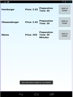 User can click “Location” button to change the location. After city is selected and click “Select Location” button, the main menu is listed again. User can add more than one address to her/his account. When user wants to give an order, user can select address to make an order. In the “Basket”, the items which user select, are listed with their price and preparation time. There is “Delete” button for every item. If user changes her/his decision, user can delete the item or items. When user clicks “Order” button, order information is delivered to the restaurants. Information e-mail is sent to the restaurants, restaurant starts to prepare order for customers. Lastly, there is “Sign Out” button. User can sign out with this button securely.