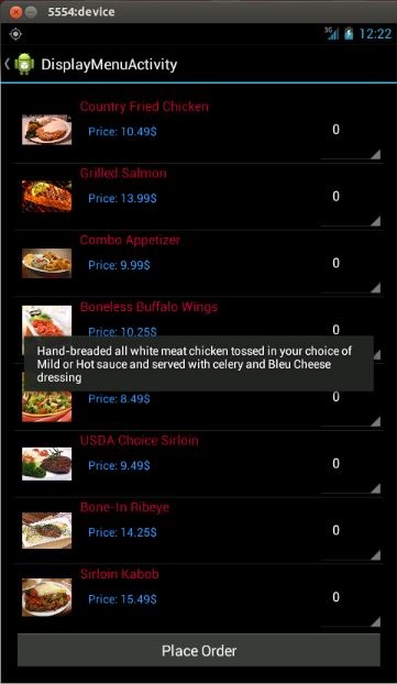 The purpose of this project is to present mobile users software product in order to give them chance to place order without going to restaurants, minimize the waiting time for the preparation of food, provide restaurant users chance to keep track how many customers come and at which time intervals, provide restaurant users to save money while hiring required number of waitress depending on the number of person placed an order and give them chance to compute with fast food chains for the fight against obesity.