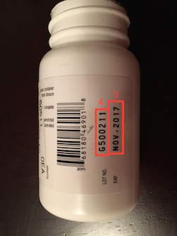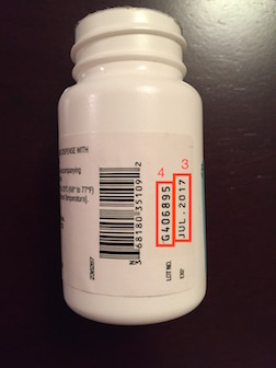 - Price: The price pharmacist paid for that particular bottle. It is shown with 3 letters which is on the sticker the pharmacy puts on the bottle. The price tag has a fixed place on the sticker that all pharmacists use. It uses the word "PRECAUTION" as the keyword for "1234567890".