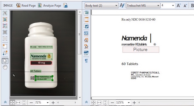 This picture shows that OCR was able to analyse the first photo as text. This page has the NDC number and the manufacturer.