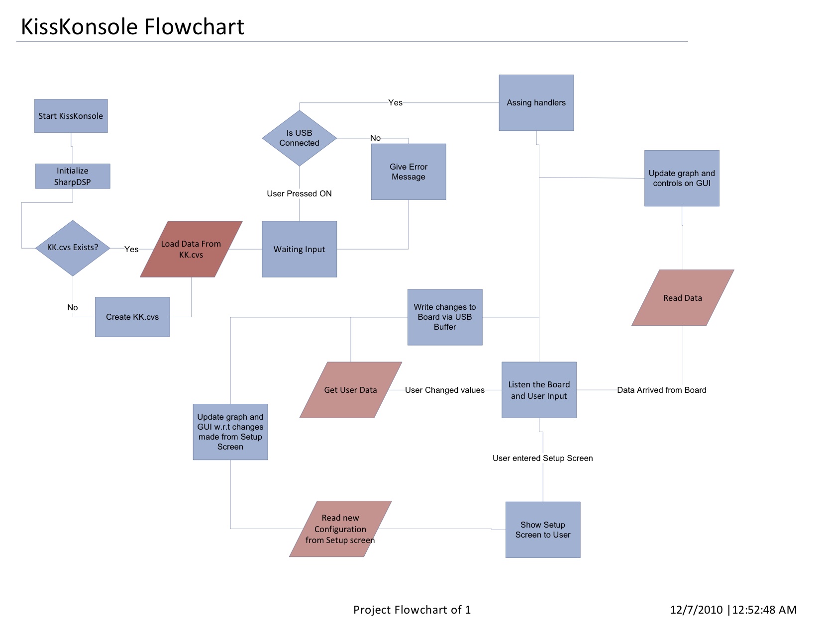 The first part of the project is about the kiss console hardware handling. There are other teams from ECE/ME departments that work in the same project. W are responsible for the software part of the project. This part will be done end of the fall 2010 semester K.I.S.S (Keep It Simple Stupid) Konsole is written in C# using the free VS 2008 IDE . It is a straight forward PC program that will allow beginners in SDR and DSP programming.