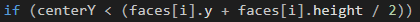 center of the face rectangle. This means I discarded the eye rectangles at the lower part of the face rectangle using the the condition below.