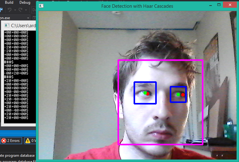 and he has a beard which I don`t. Under all those variables, I realized program is unable to track pupils with glasses. It is also dependent on the eye