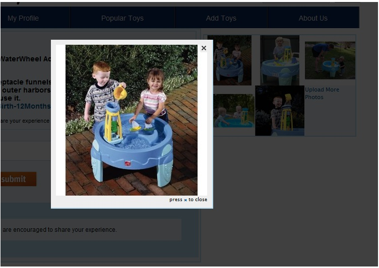 Toys have photo albums which can be created by users. User can add pictures about toys to these albums.