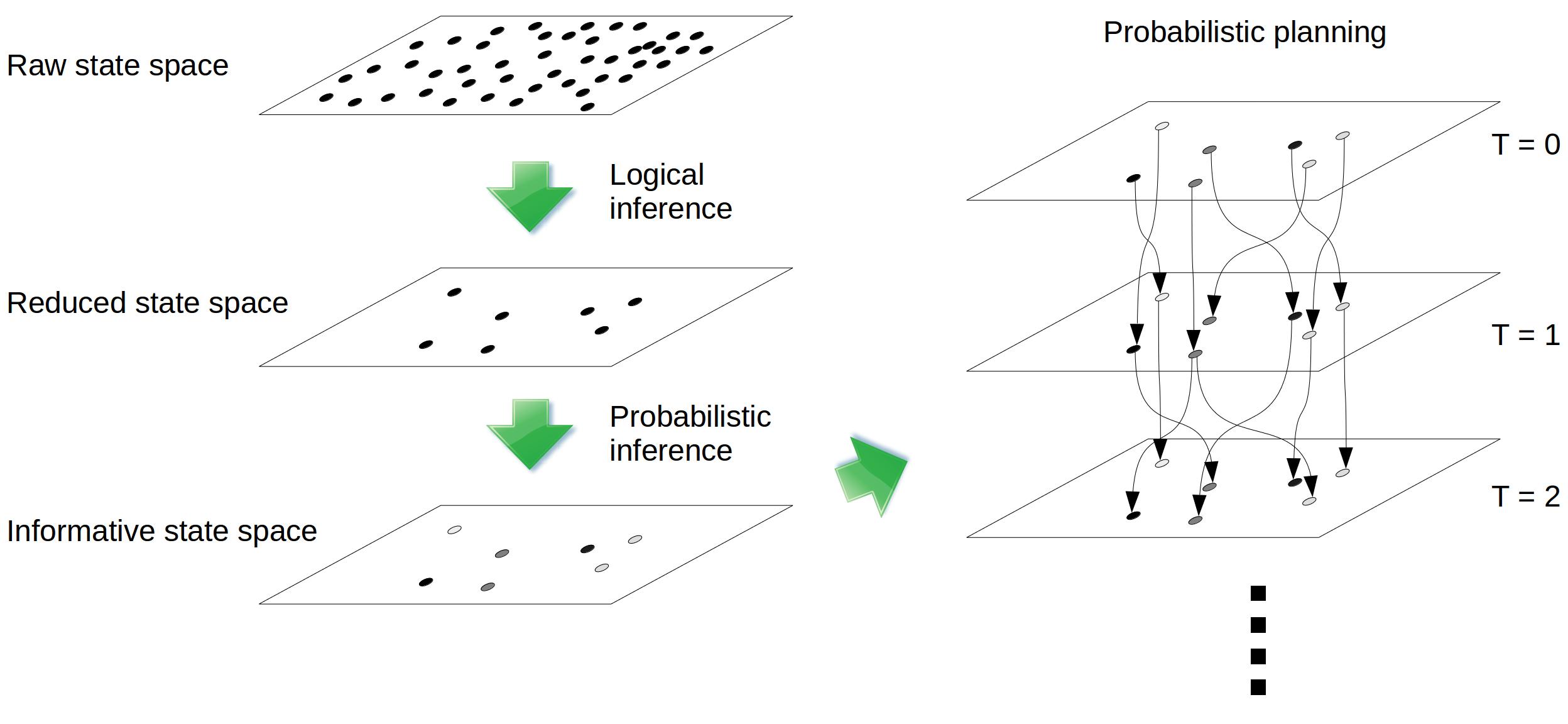 The original CORPP algorithm (details in our AAAI'15 paper) uses a commonsense reasoner to:- compute the set of possible worlds (that together specify the state space for planning); and