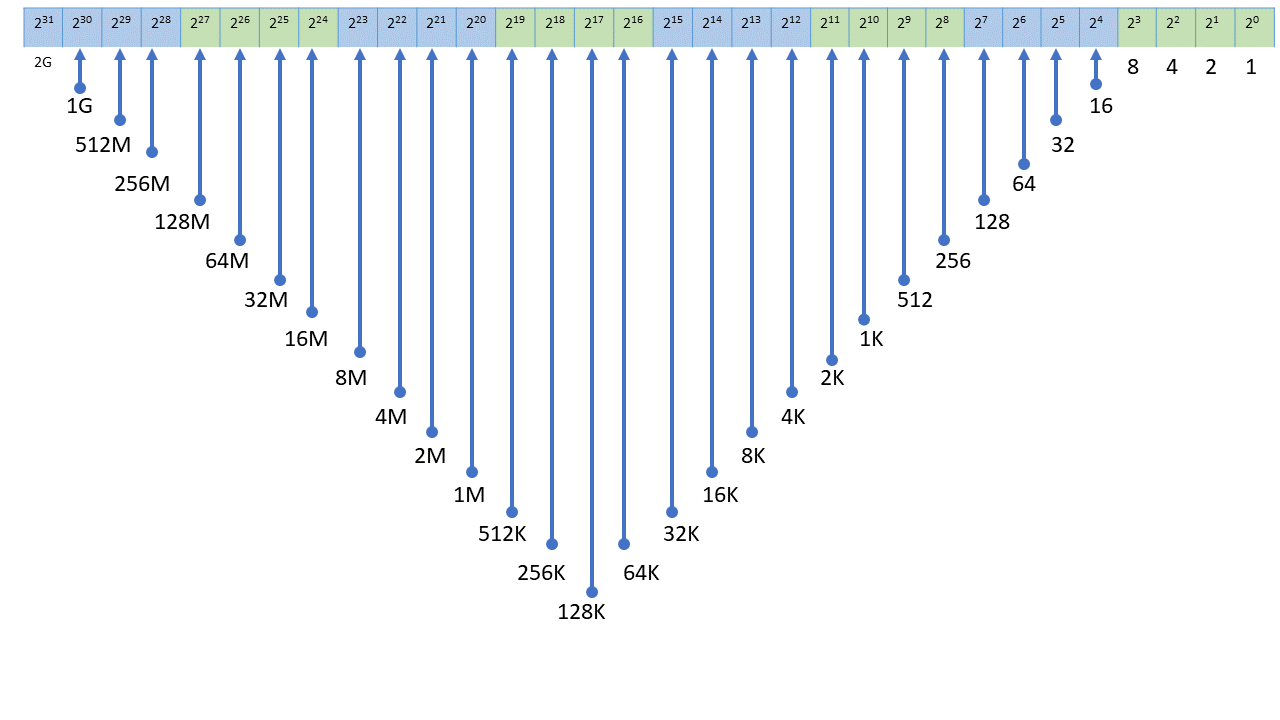| 231 | 2,147,483,648 | 2,097,152K | 2048M | 2G |