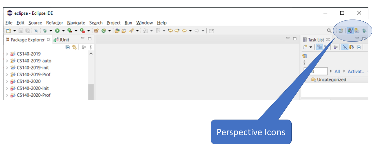 Perspectives are disconcerting at first because they reconfigure the entire window, but are useful because we can choose perspectives to match the kind of task we will be performing. Once you get used to the perspective icons, and learn that you can recover the previous window configuration just by clicking on one of the perspective icons, they make more sense.
